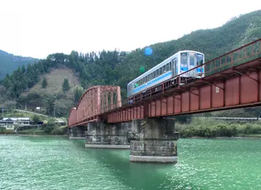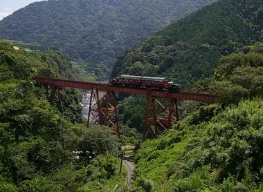 Cette ligne établie non loin de Kumamoto passe devant le magnifique volcan Aso et sa campagne verdoyante environnante, ainsi que sur le pont Tateno, un des plus beaux du Japon.