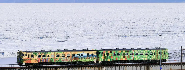 Pour des paysages hivernaux à couper le souffle, le Ryuhyo Monogatari Train est à ne pas manquer. Les environs du train sont habillés d’un manteau de neige, tandis que dans la mer d’Okhotsk, longée par les rails, est glacée. Au loin, on peut apercevoir le parc national de Shiretoko, avec ses sommets enneigés. Le train connecte les villes de Abashiri et Shiretoko Shari en une heure et certains trains s’arrêtent à Kitahama, où un pont d’observation vous laisse scruter la mer d’Okhotsk.