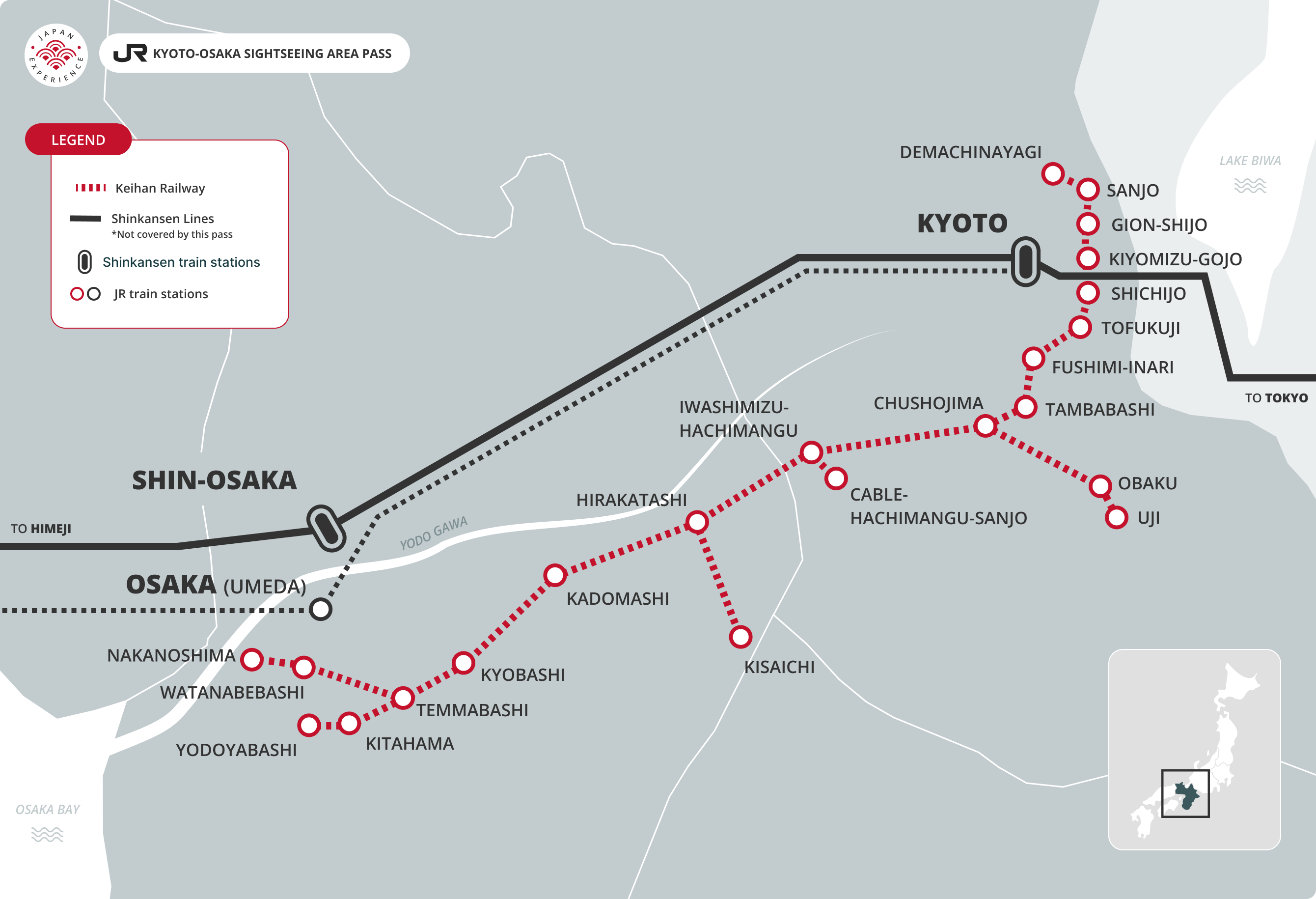 Le pass est valable 1 jour. Il comprend la ligne principale Keihan (d'Osaka - Nakanoshima à Kyoto - Demachiyanagi). Il comprend également :