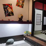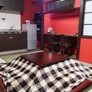 Entrando in casa, si noterà subito uno splendido giardino coperto e due biciclette a disposizione degli ospiti. Nella sala da pranzo/soggiorno, i tatami circondano un tavolo basso in stile giapponese, ci sono una piccola cucina in stile occidentale e un bancone bar con sgabelli.