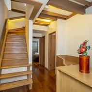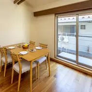 Al piano terra, c'è una camera in stile occidentale con letto matrimoniale, un bagno e un piccolo giardino. Al piano di sopra, c'è una cucina con sala da pranzo con pavimento riscaldato, un balcone e un soggiorno classico giapponese per sentirsi come a casa.