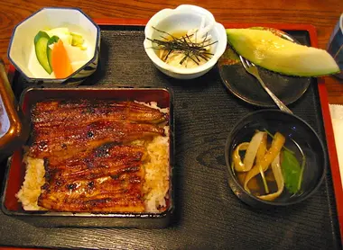 Nella cucina di pesce tradizionale del periodo Edo (1603-1868), l'anguilla si trova oggi su tutte le buone tavole del Giappone. Essa si mangia con filetti alla griglia su un fuoco di legna con una salsa agrodolce e un pizzico di pepe sansho. Sembra che la tradizione di mangiare anguille è continuata per 1.000 anni nel giorno del Doyo non Ushinohi (nel 2018, sarà il 20 luglio e il 1 agosto). In Giappone, l'estate è nota per la mancanza di energia indotta dal calore, si consiglia quindi di mangiare l'anguilla, che è tonificante e molto nutriente.