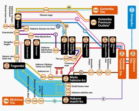 L'Hakone Freepass permette di salire e scendere liberamente dai mezzi all'interno di Hakone, oltre a fornire accesso a prezzo scontato a varie attrazioni della zona.