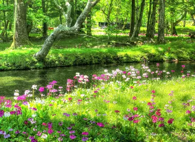 Vicino a Nikko, storica città del Giappone, il lago Chuzenji ha una spiaggia sulla sua riva occidentale. La spiaggia di Senjugahama è circondata da boschi e può essere raggiunta in autobus o a piedi. Da qui si gode di una magnifica vista sul Monte Nantai e le rive del fiume Yanagisawa, che sfocia nel lago, sono punteggiate di primule bianche e rosa. Sulla spiaggia sono disponibili tavoli da picnic, il che la rende una tappa ideale della vostra passeggiata.
