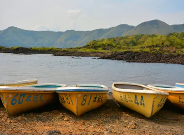 Il lago è circondato da montagne, i cui lati sono ricoperti da un fitto strato di vegetazione, un tipico paesaggio giapponese. L'ambiente è magnifico, così come la spiaggia sabbiosa e l'acqua! Qui è possibile praticare numerosi sport acquatici, tra cui pedalò e canoe. È anche possibile campeggiare sulla riva. Da non dimenticare: questa spiaggia è anche il luogo in cui si riuniscono i cigni in inverno. Potete anche fare un giro del lago a bordo delle barche a forma di cigno e tartaruga, Hakuchomaru e Kamemaru!