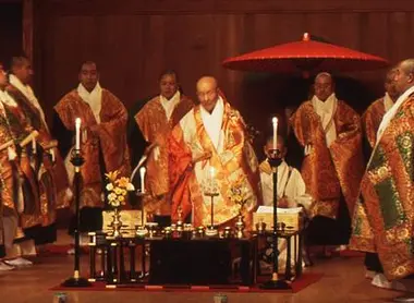 Questacerimonia ha velocemente conquistato il cuore degli spettatori per la sua bellezza e per le sue atmosfere. Ineffetti, per l’occasione, i monaci più importanti si vestono con le loro piùbelle tenute, delle vesti bordate in broccato. E i loro inni risuonano fino ai dintorni del tempio Kongobu-ji (sedeufficiale della scuola Shingon).