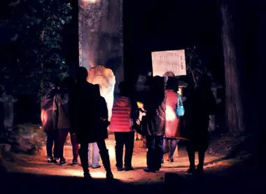 Nonostante i tuoi migliori sforzi, non puoi controllare il tremito delle tue mani ... La tua torcia guizza nell'oscurità. Senza fiato, senti il cuore che ti batte forte nel petto. Per essere onesti, sei pronto a partire alla minima occasione. La domanda "Cosa sto facendo qui?" continua a insinuare nella tua testa. Quando all'ufficio turistico di Matsue ti ha parlato di un tour guidato a tema dei fantasmi della città, è sembrata una buona idea e ora stai passeggiando per le strade della città nella notte oscura ... Stai tranquillo, anche se i fantasmi di Matsue sono numerosi, sei salvo! Lafcadio Hearn aka Yakumo Koizumi, un autore giapponese , ha raccolto e compilato molte storie fantastiche della città in molti dei suoi libri. Fu anche nella sua residenza di Matsue che iniziò a scrivere "Kwaidan: storie e studi su cose strane" . Dobbiamo a Bon Koizumi, il pronipote di Hearn, grazie per questi tour che seguono le orme dei fantasmi della città. Dal 2008, i tour (solo in lingua giapponese), organizzati con l'aiuto dell'ufficio turistico, hanno avuto luogo di notte in piccoli gruppi di dieci persone e con una torcia elettrica.