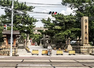 L'intero Sumiyoshi Taisha, risalente al terzo secolo e ricostruito dal diciannovesimo secolo, classificato "tesoro nazionale" è dedicato alle quattro divinità kami, del mare, dell'agricoltura, della diplomazia e della poesia waka. Anche l'imperatrice Jingu (169-269), nota per la sua conquista della Corea, è venerata. In passato, i commercianti di mare si fermavano ad Osaka per pregare presso il Sumiyoshi Taisha, prima di tornare alle loro navi.