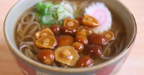 Nameko mushrooms in noodle soup