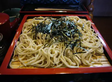 Soba is a type of noodle made from wheat and buckwheat flour. Soba can be served hot in broth or cold with a dipping sauce. Interestingly the popular dish "yakisoba", fried noodles cooked with pork, vegetables and egg, is in fact made using Chinese noodles and not actually made with soba! Along with udon, soba is the most consumed type of noodle in Japan.