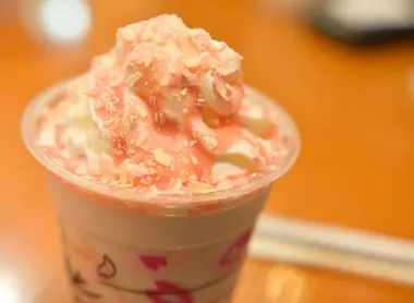 As for the menu, sakura features in three drinks and two desserts, plus there's a drink on sale exclusively in konbini. You can sample a pink strawberry or sakura mochi frappuccino, a strawberry milk with sakura and a tea in the same flavor. And why not try a cherry blossom donut or cake along with your drink?