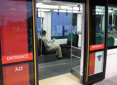 On the ground, there are raised yellow lines (Tactile Ground Surface Indicators) everywhere to help guide the visually impaired, as well as LED indicators.