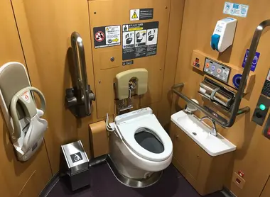 The toilet system has been completely revised at all levels and in all public places. In train stations, on trains, in department stores and supermarkets too, you will find adapted toilets, tamokuteki toilets, with automatic opening and closing doors, plenty of space, and a call button in case of emergency (a fall, illness, etc.).