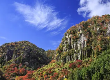 - Yabakei Gorge in Kyushu, Oita Prefecture, whose outstanding cliffs overlook the Yamakuni river.