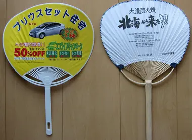 The uchiwa is a summer accessory, but can be found all over Japan throughout the year. It's not uncommon to receive plastic uchiwa printed with advertisements, distributed free in the streets. These are the most common, and very practical. Some people even collect them!
