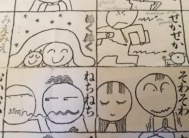 Taeko Tada's Hiroshima Miracle manga. Manga often use onomatopoeia. Here: "よしよし" which means "It's good, it's fine".