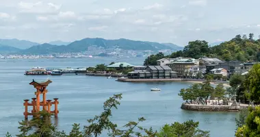 The sacred island of Miyajima and its famous torii with feet in water, worth a visit off Hiroshima in Japan