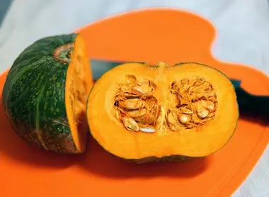 · Kabocha (かぼっちゃ): Japanese pumpkin. The flesh is creamy and soft, with a squash and chestnut flavor. The kabocha is widely used in Japanese food. In the kitchen it's stewed, used in miso soup, tempura, or even in salads. Its sweetness also allows it to be used in desserts like cakes, cookies and cheesecakes.