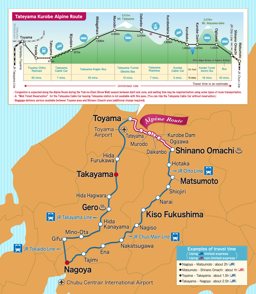 Travel at your own pace between Toyama and Nagoya, in either direction, over several days. - Designed for international travelers